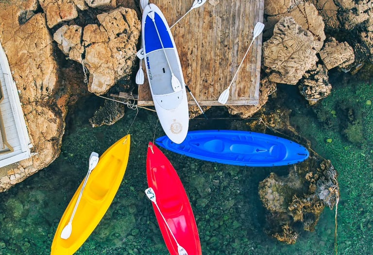 Berrak denizde, Kaş’ın sakin koylarını SUP veya kano ile özgürce keşfedin.